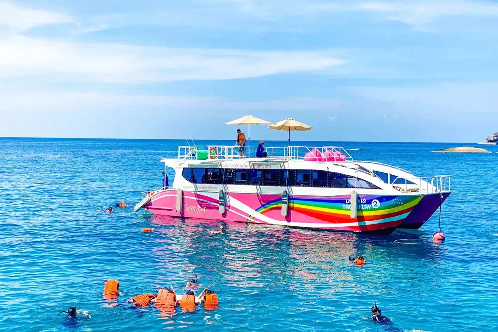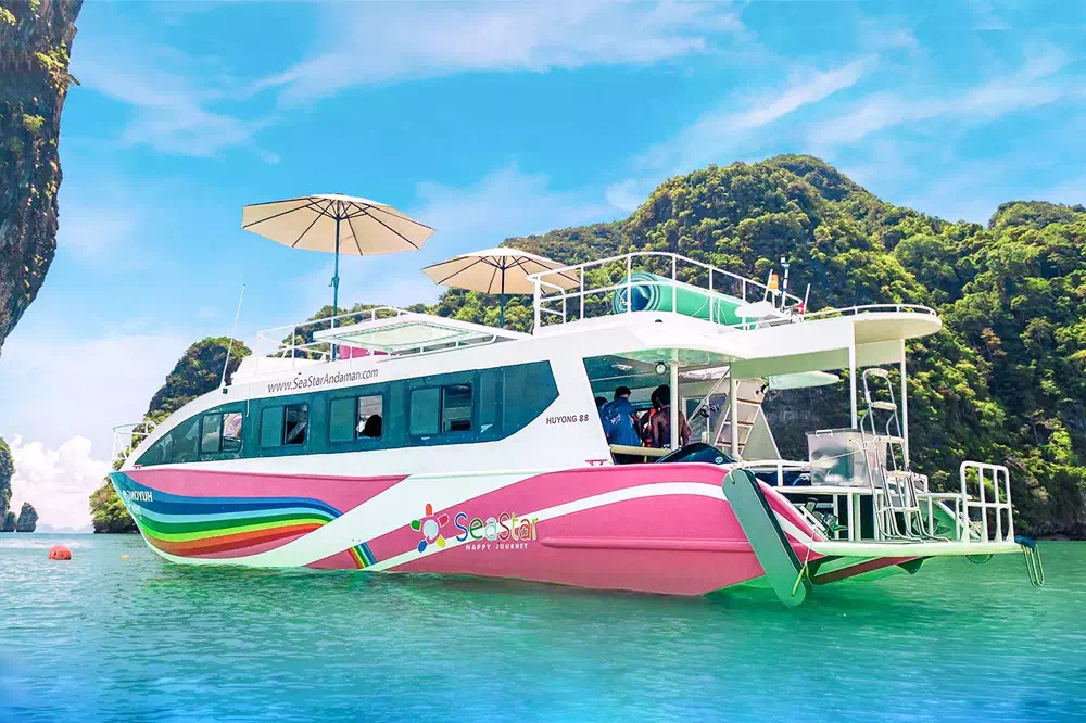 Your tour starts early in the morning with a comfortable minivan transfer from your hotel to Thap Lamu Pier in Phang Nga. Once you arrive, you can meet your guide, enjoy a light snack, change clothes if needed and get ready for your journey across the Andaman Sea.