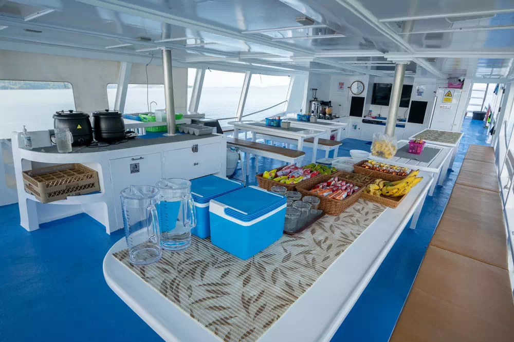 Lunch is served on Miang Island (Ko Miang), which is home to the national park rangers and small local facilities. You can enjoy a mix of Thai and European dishes at the beachside café and spend your free time swimming in clear turquoise water or exploring the lush tropical surroundings.
