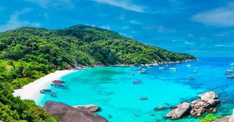 The Similan Islands are a true treasure of Thailand, known for their white sandy beaches, granite rocks, and coral plateaus. This is a place where you can enjoy underwater caves and grottos, see a wide variety of fish, and encounter large sea turtles, which have become a symbol of the Similan Islands.