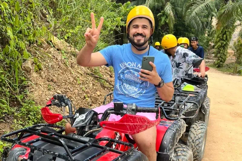Next, get ready for an exciting ATV ride through forest trails and along the riverside. Participants aged 17 and over can drive their own ATV, while children aged 7–16 can join safely as passengers.