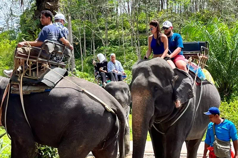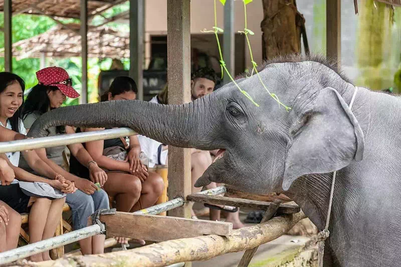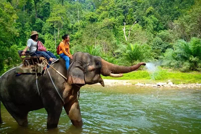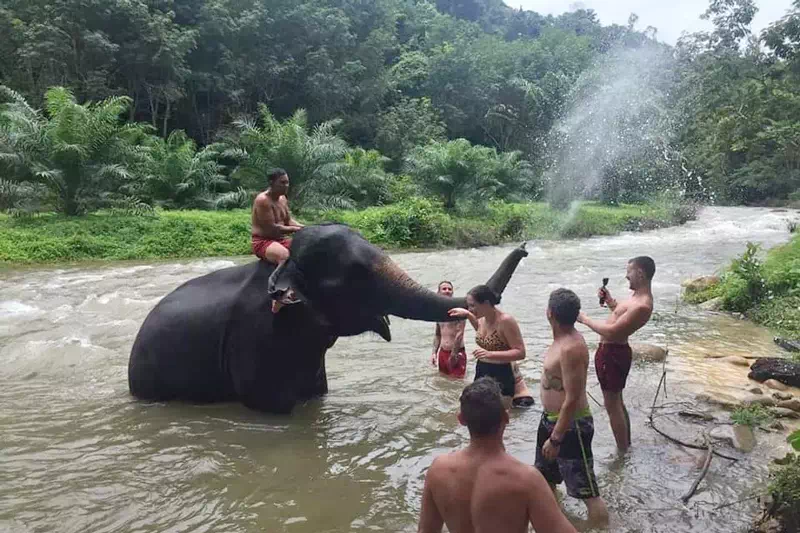 Another highlight of the day is meeting Thailand’s gentle giants at an elephant sanctuary. Feed them bananas, bathe together in the river, and enjoy a relaxing elephant ride through lush jungle scenery.